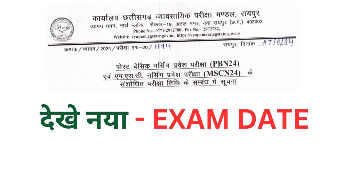 छत्तीसगढ़ पोस्ट बेसिक नर्सिंग प्रवेश परीक्षा एवं एम.एस.सी. नर्सिंग प्रवेश परीक्षा तिथि में संसोधन